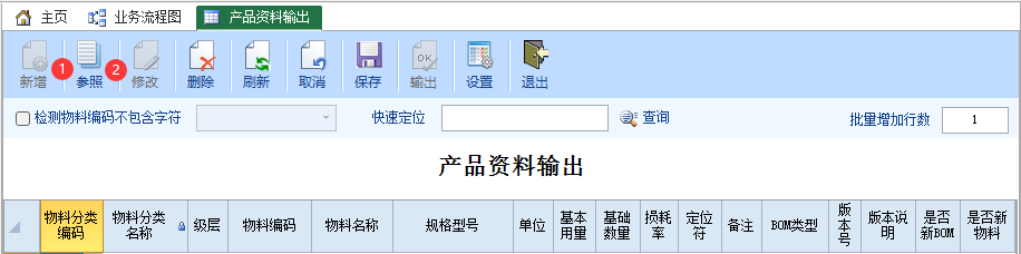 第1步:维护完成,单击【输出】,自动创建新物料编码和所有的产品的BOM;