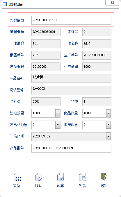 - 准备好扫描枪,在生产工序转入时,进行物料扫描。