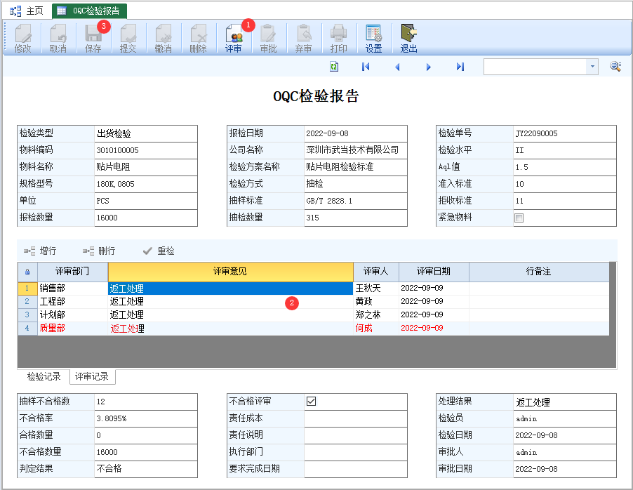 - 第4步:根据检验记录不合格数,自动判定检验结果;